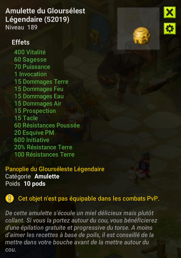 - Panoplie complète (Masque, Cape, Ceinture, Amulette, Bottes)